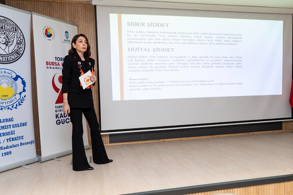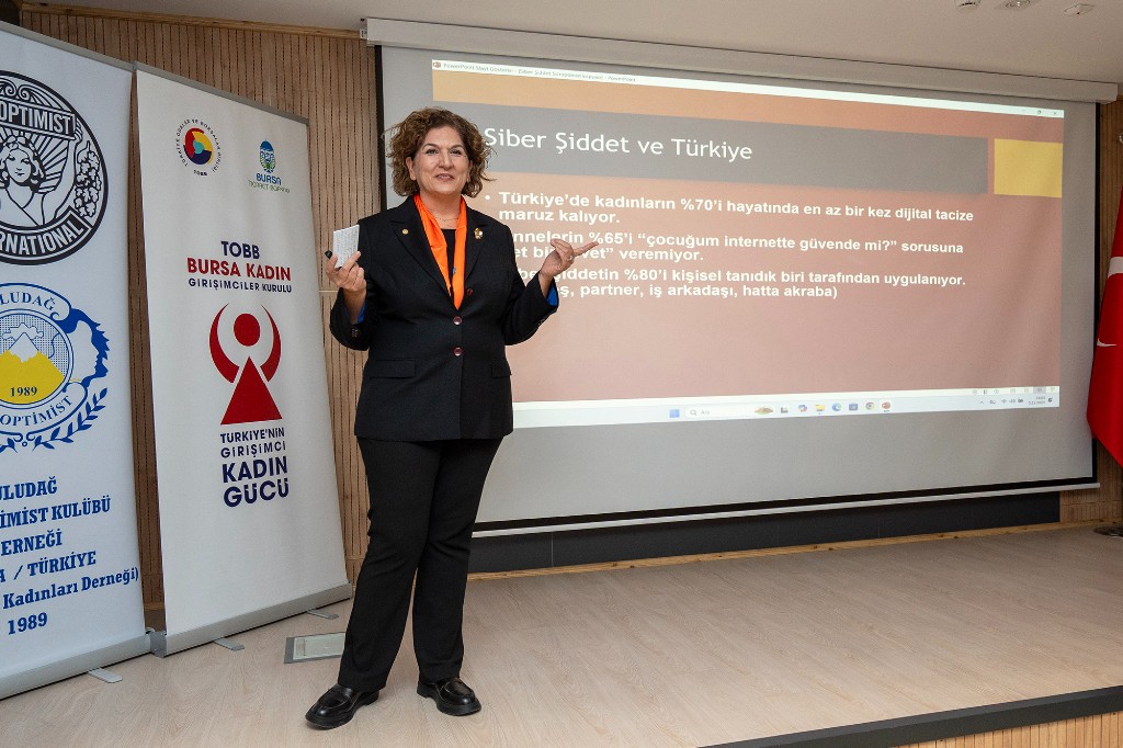 Bursa Ticaret Borsası koordinatörlüğünde faaliyetlerini sürdüren Türkiye Odalar ve Borsalar Birliği (TOBB) Bursa Kadın Girişimciler Kurulu, 5 Aralık Dünya Kadın Hakları Günü’nde, Uludağ Soroptimist Kulübü iş birliğiyle “Siber Şiddet” seminerine ev sahipliği yaptı. Kadına Yönelik Şiddete Karşı Mücadele Haftası kapsamında düzenlenen etkinlikte, günümüzün en ciddi tehditlerinden biri olan kadınların dijital ortamdaki güvenlik sorunları ele alındı. Programa TOBB Bursa Kadın Girişimciler Kurulu İcra Komitesi Başkanı Sabriye Şen ve İcra Komitesi Üyeleri, Uludağ Soroptimist Kulübü Başkanı Hanife Yeşil ve Yönetim Kurulu Üyeleri, Aile ve Sosyal Hizmetler İl Müdürlüğü Şube Müdürü Nurgül Duran, kadın muhtarlar, kadın dernekleri ve sivil toplum kuruluşları temsilcileri ile çok sayıda kadın katıldı.